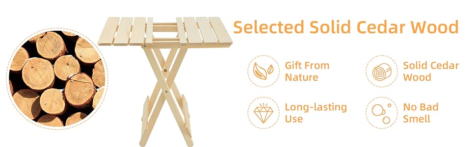 Crafted from 100% solid cypress wood, this folding table combines natural beauty with exceptional durability. Its robust structure, built with a strong X-frame, offers superior stability.