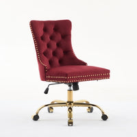 With its tufted back, nailhead trim, and golden base, this modern chair fits seamlessly into home offices, bedrooms, vanity corners, or reception areas.